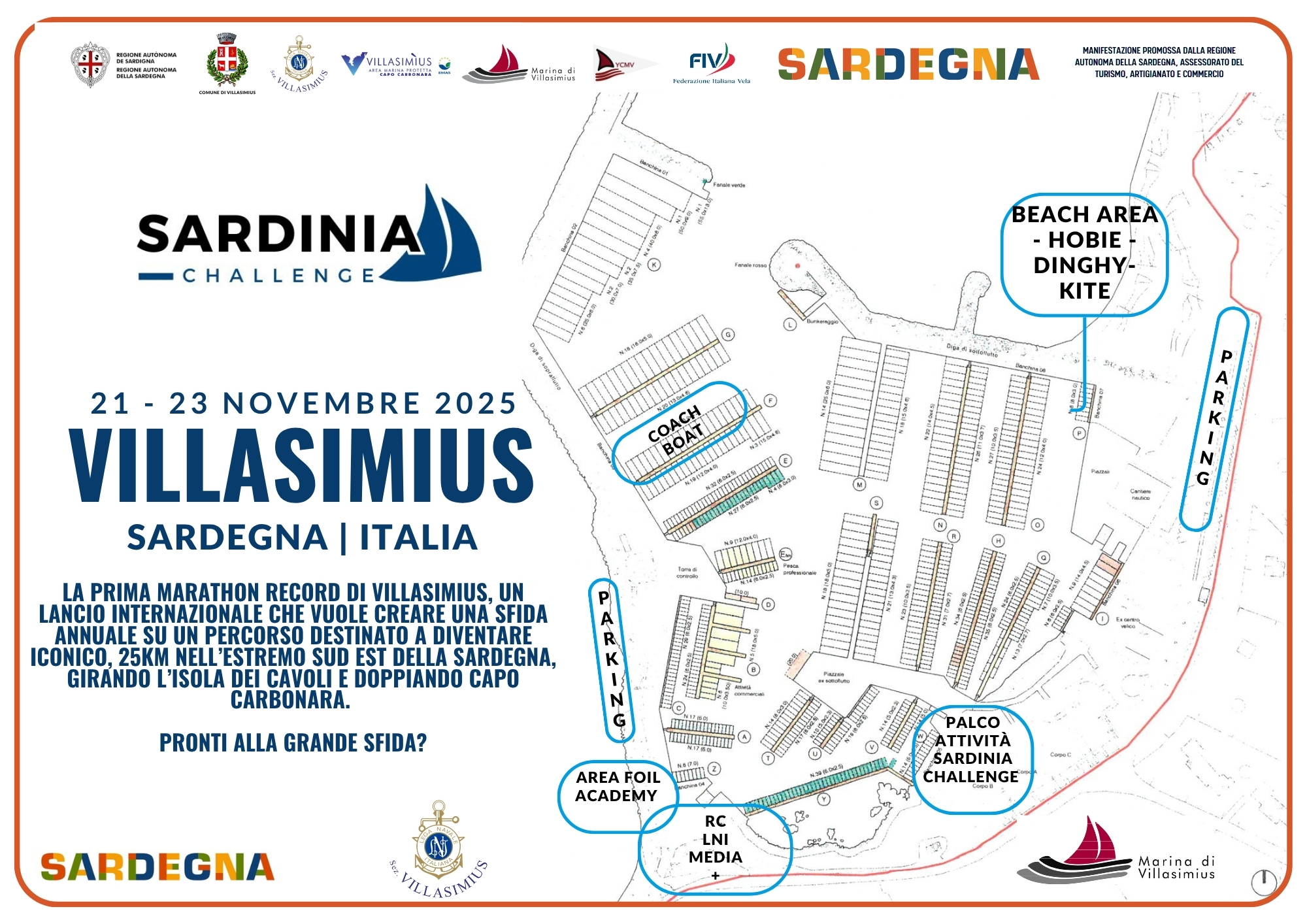 Con il supporto di: Gruppo Ferrero β Progetto Kinder Joy of Moving, Comune di Villasimius, AMP Capo Carbonara, Regione Sardegna, Consorzio Turistico Villasimius, Area Marina Protetta Capo Carbonara